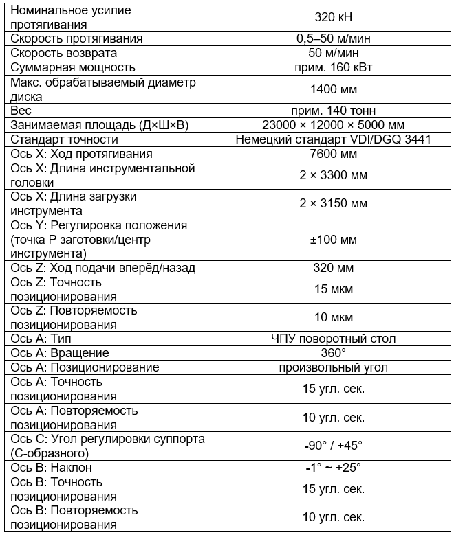 Шпиндель: Усилие 320 кН, мощность ~160 кВт