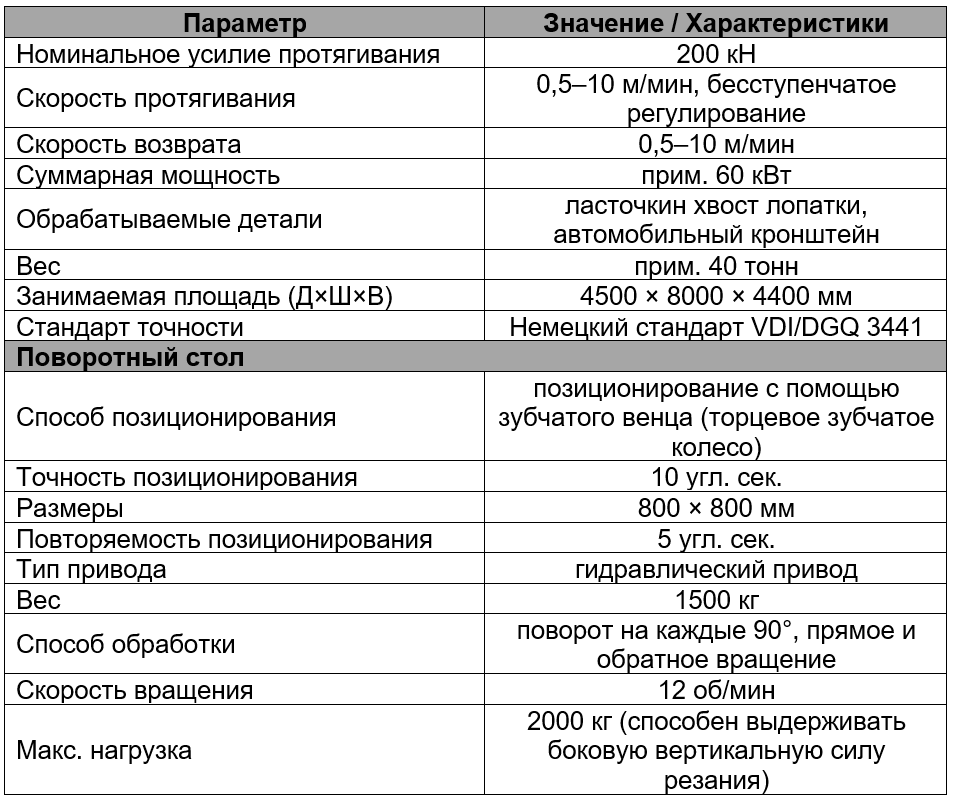 Шпиндель: Усилие 200 кН, мощность ~60 кВт
