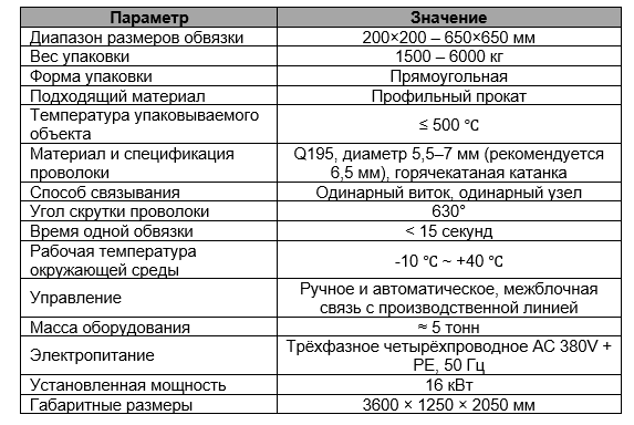 Технические параметры:• Диапазон обвязки: 200х200 – 650х650 мм