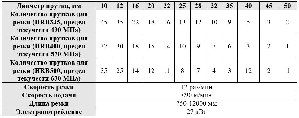 Роботизированный комплекс для резки стальных прутков диаметром от 10 до 50 мм. Скорость резки - 12 раз/мин, скорость подачи до 90 м/мин. Длина резки от 750 до 12000 мм. Электропотребление 27 кВт. Оптимизирован для работы с арматурой различных марок прочности.