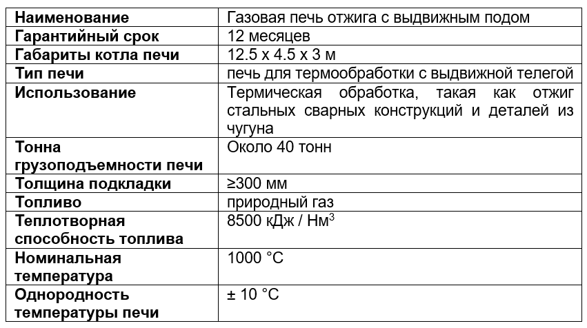 Особенности конструкции: Выкатной под, футеровка керамическим волокном