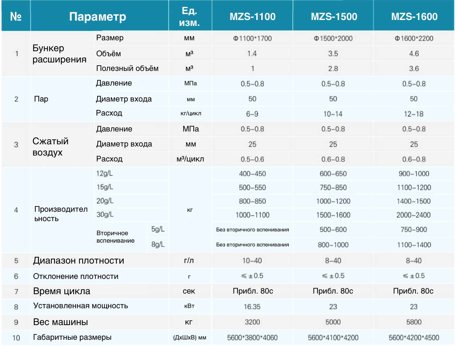- Бункер оснащён герметичной системой постоянного давления для вспенивания, что обеспечивает высокую тепловую эффективность и экономию пара. По сравнению с непрерывным предвспенивателем энергосбережение составляет более 50%.