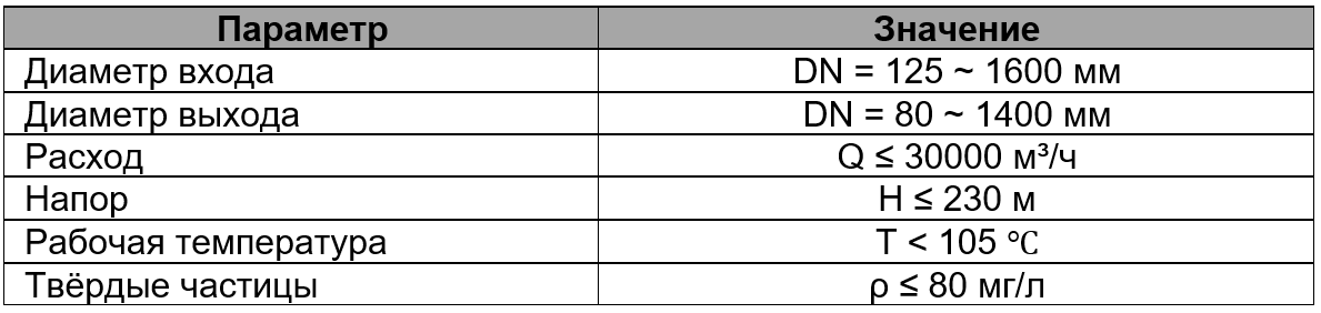 Технические характеристики:- Диаметр входа: DN 125–1600 мм