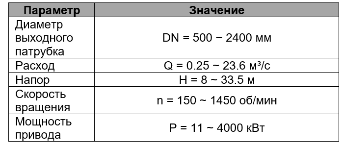 Расход: Q = 0.25 ~ 23.6 м³/с