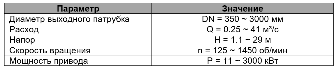 - Расход: Q = 0,25–41 м?/с