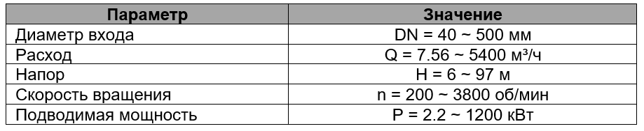 - Расход: Q = 7.56 ~ 5400 м³/ч