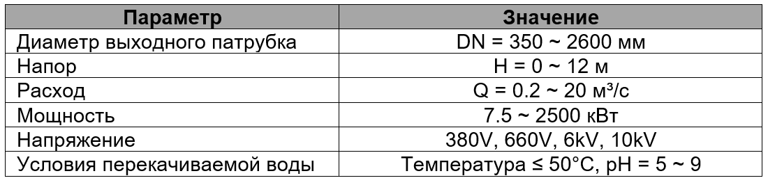 - Условия перекачиваемой воды: Температура ≤ 50°C, pH = 5 ~ 9
