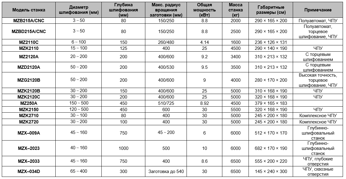 Диапазон обработки: MZB215A, MZ2110C, MZK2110, MZ2120A, MZ250A, MZK2150, MZK2710, MZK2720, MZX–009A и др.