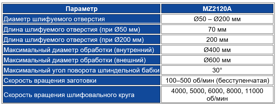 Минимальный диаметр шлифуемого отверстия: 50–200 мм