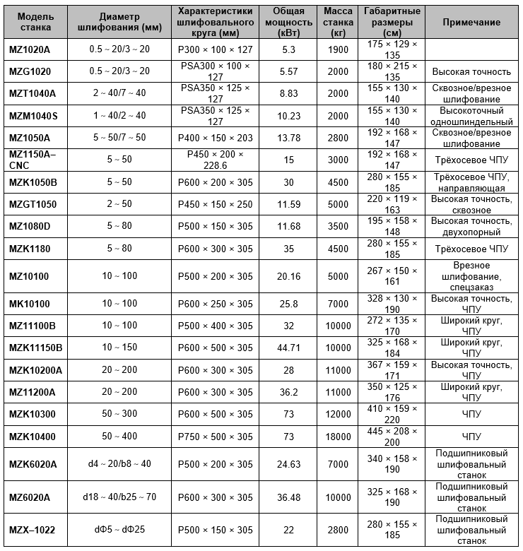 Диапазон обработки: MZ1020A, MZG1020, MZT1040A, MZM1040S, MZ1050A, MZ1150A–CNC, MZK1050B, MZGT1050, MZ1080D, MZK1180, MZ10100, MK10100, MZ11100B, MZK11150B, MZK10200A, MZ11200A, MZK10300, MZK10400